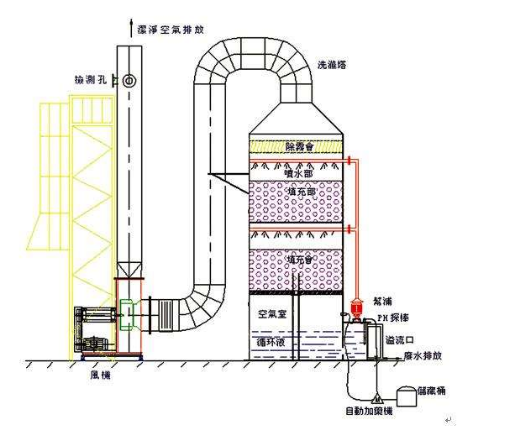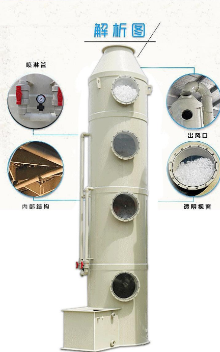 噴淋洗滌塔是廢氣處理工程中常用的凈化設備。該凈化塔有“立式”及“臥式”兩種產品。本產品廣泛用于化工、電鍍、五金、鋁材、電器、醫(yī)藥、印染、等機械加工行業(yè)中產生的氮氧化物、氯化氫氣、氟化氫、氨氣、硫酸霧、鉻酸霧、氰氫酸氣體等水溶性有毒有害氣體的凈化;亦可適用于氨、硫化氫、酚光氣、甲醛、甲醇、胺類等惡臭物質的除臭處理。